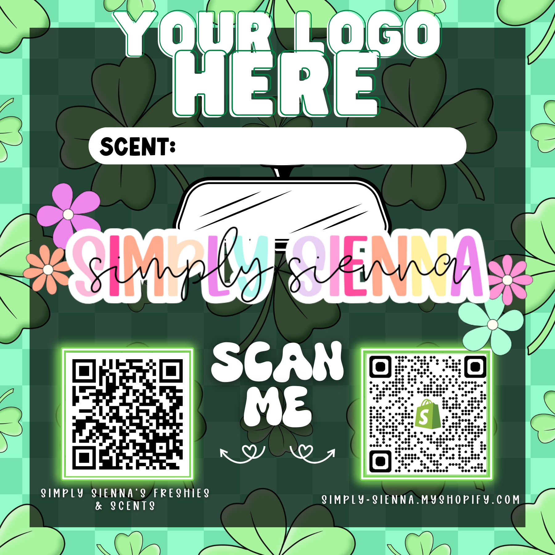 To add your logo and/or QR code/s, you must email ready to print downloads to customer service at simplysiennacustomerservice@gmail.com immediately after purchase. If files are not sent, logo/QR code area will be left blank. Up to 1 logo and 2 QR codes can be sent.