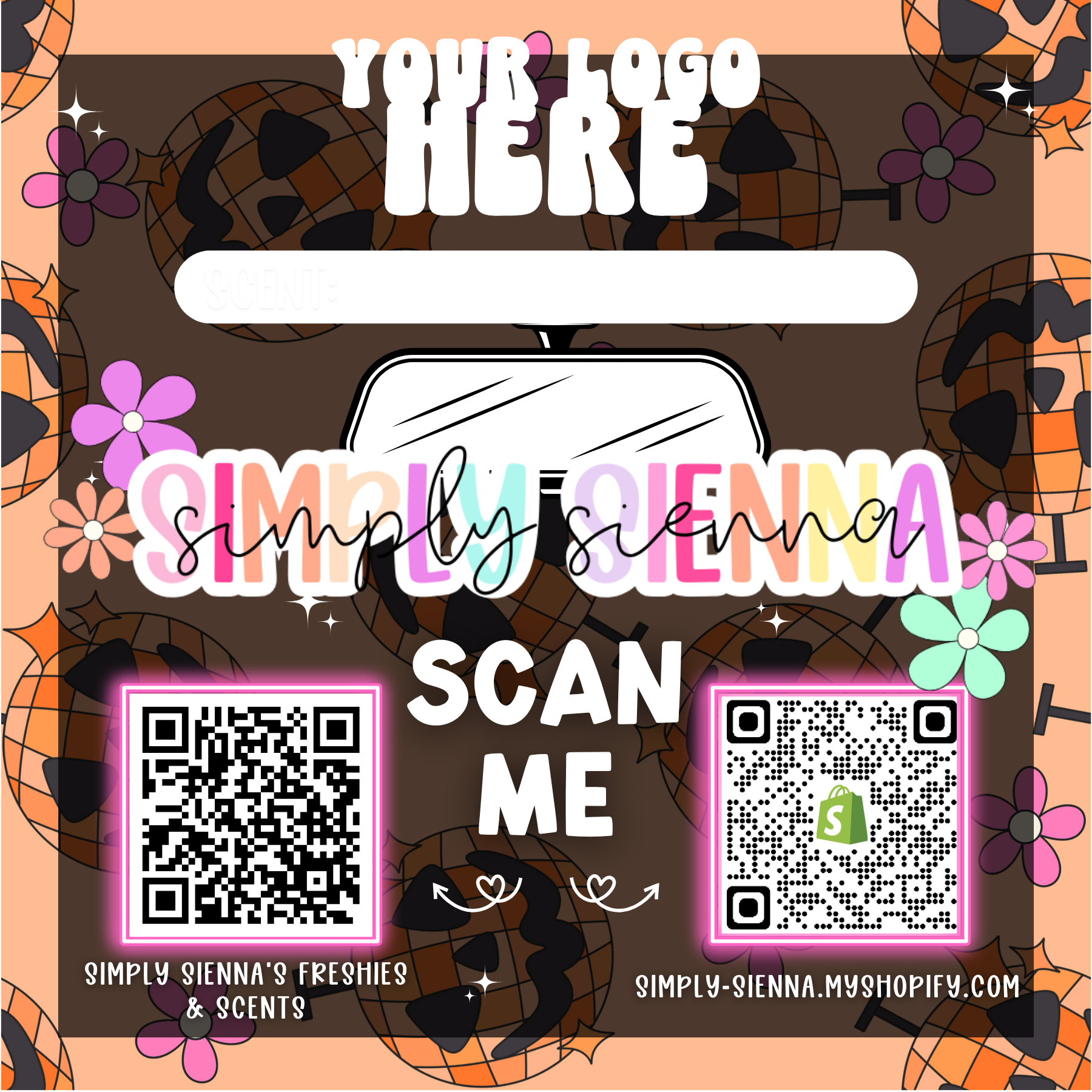 To add your logo and/or QR code/s, you must email ready to print downloads to customer service at simplysiennacustomerservice@gmail.com immediately after purchase. If files are not sent, logo/QR code area will be left blank. Up to 1 logo and 2 QR codes can be sent.