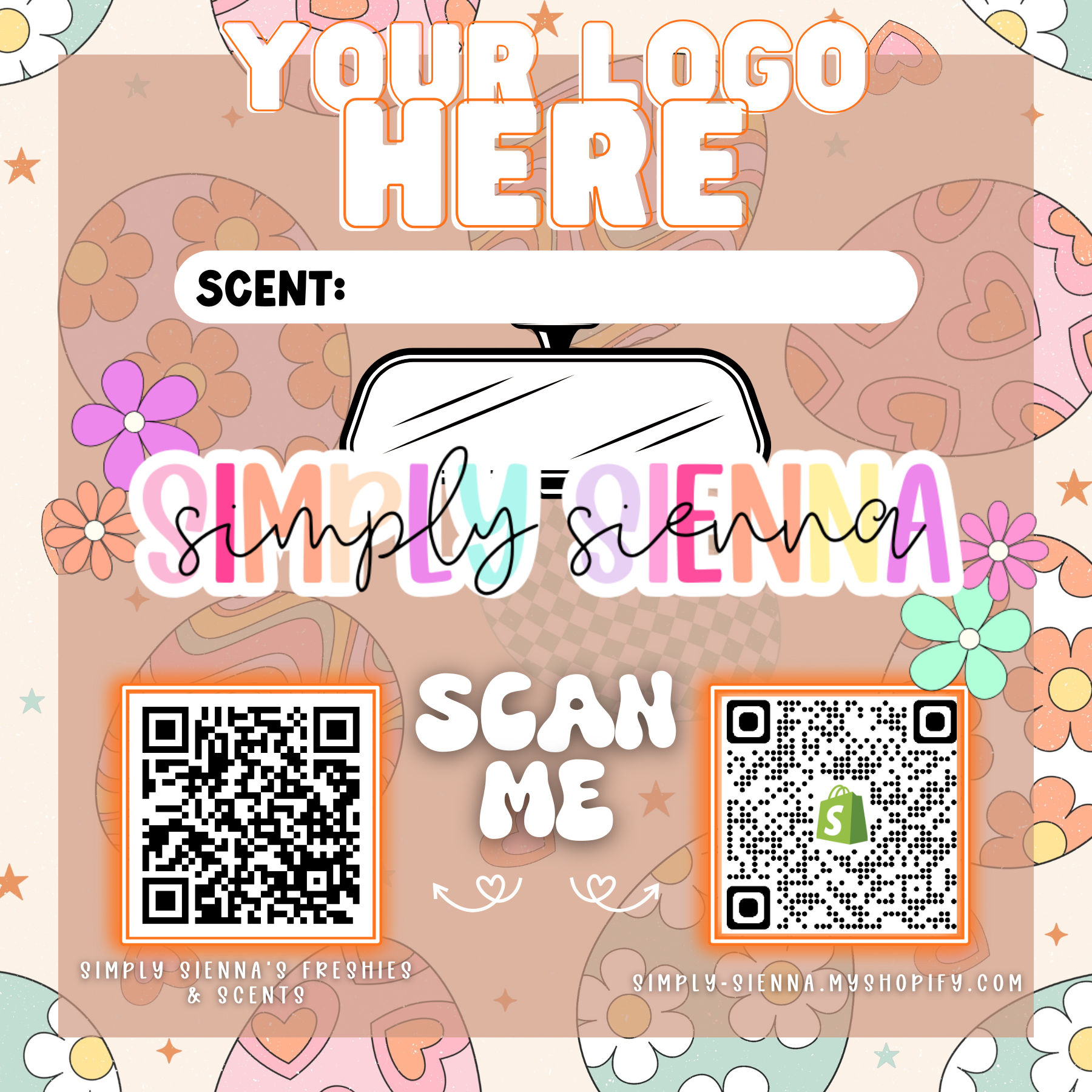 To add your logo and/or QR code/s, you must email ready to print downloads to customer service at simplysiennacustomerservice@gmail.com immediately after purchase. If files are not sent, logo/QR code area will be left blank. Up to 1 logo and 2 QR codes can be sent.