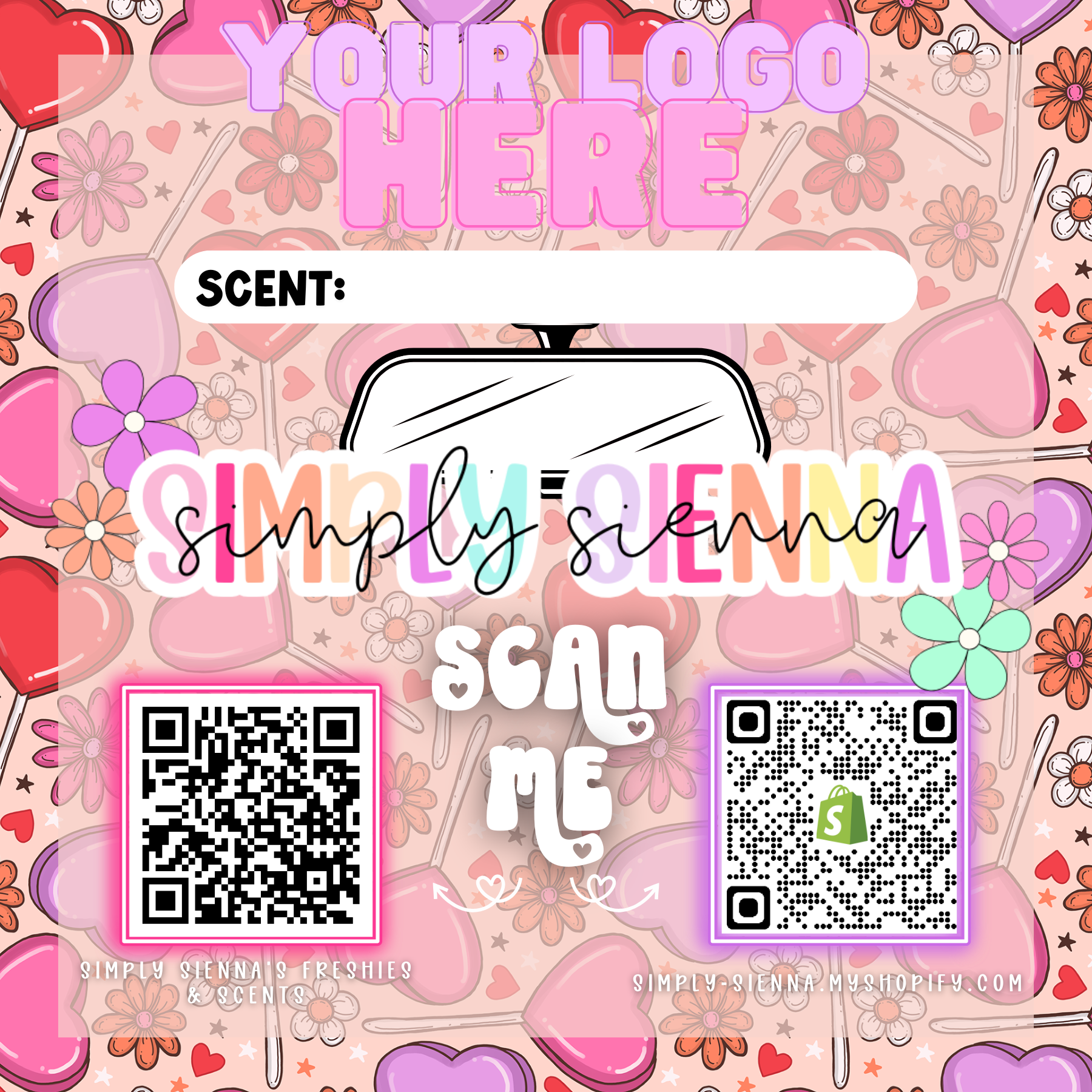 To add your logo and/or QR code/s, you must email ready to print downloads to customer service at simplysiennacustomerservice@gmail.com immediately after purchase. If files are not sent, logo/QR code area will be left blank. Up to 1 logo and 2 QR codes can be sent.